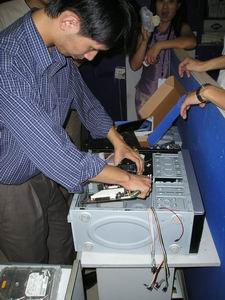 經(jīng)過一翻慘絕人寰、天翻地覆、激烈無比的撕殺,這次活動的冠軍產(chǎn)生了,不只是香花掌聲,同時還可以獲得128M的MP3一部……呵呵怪不得剛才裝機的時候那么拼命,