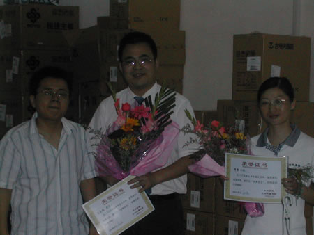 (圖四)熊濤經(jīng)理與“銷售標兵”、“優(yōu)秀員工”合影留念