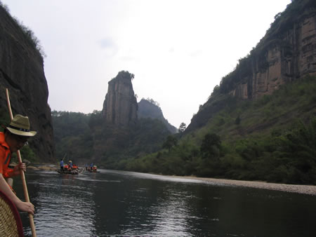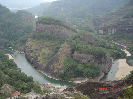 武夷山風(fēng)景區(qū)東西寬約5公里,南北長(zhǎng)約14公里,面積60平方公里。有九曲溪、溪南、水簾洞、碧石巖、桃源洞、三仰峰、武夷宮、云窩等景點(diǎn),屬典型的丹霞地 貌,素有“碧水丹山”、“奇秀甲東南”之美譽(yù),是首批國(guó)家級(jí)重點(diǎn)風(fēng)景名勝區(qū)之一,被國(guó)際旅游組織執(zhí)委會(huì)主席巴爾科夫人稱為“世界環(huán)境保護(hù)的典范”。武夷山是《洞天福地記》(杜光庭)里的三十六洞天之一!叭 水清如玉,六六奇峰翠插天”,構(gòu)成了奇幻百出的武夷山水之勝!跋,山環(huán)六六峰”,“曲曲山回轉(zhuǎn),峰峰水抱流”﹔臨水可觀山景,登山可望水秀,乘上一 葉竹筏游覽世間一絕的九曲溪,順流而下,山沿水立,水隨山轉(zhuǎn),山光水色,交相輝 映,三十六峰、九十九巖一覽無(wú)余,其間更有距今約3800年前高插于懸崖峭壁之上的 船棺,令人嘆為觀止.....