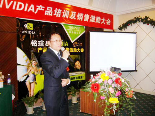 緊接著NVIDIA中國區銷售經理侯宇濤先生對NVIDIA的成長歷程,先進的顯示技術,產品的市場走勢做了詳細介紹。特別對今年nVIDIA“三重威力”所包涵的最新顯卡技術作了重點講解,陰影渲染優化(SM3.0)、高精度動態渲染(HDR)和超級顯卡并聯(SLI)已經在Geforce6及其以上的顯卡中得到了完美展現,成為了NVIDIA今年快速成長的助推器,對于2005年度銘瑄攜手NVIDIA在市場推廣方面所作的努力表示肯定,并對雙方繼續加強合作表示了積極展望。