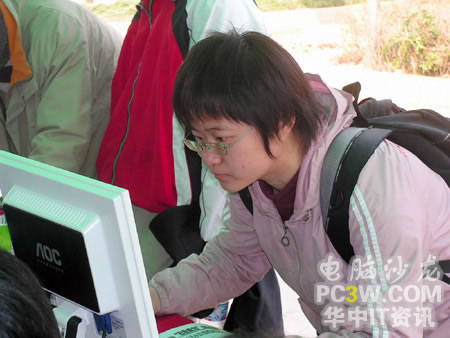 如今武漢高校中也有不少女生對IT產品擁有強烈的興趣。看來這位女生的眼光不錯哦,第一眼就相中了6600中的最高版本6600GT。