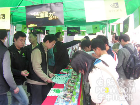 產品展示區的各款顯示卡吸引了不少過路同學的眼球,紛紛過來仔細觀看,并不時向工作人員咨詢產品細節。