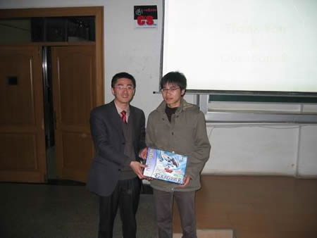 (圖17)講座過(guò)后還有現(xiàn)場(chǎng)抽獎(jiǎng)活動(dòng),最后一位男同學(xué)獲得Geforce6600系列顯卡一張,可喜可賀呀