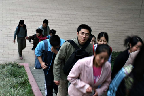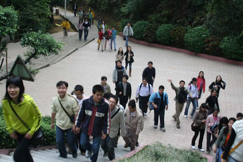 (登臨圭峰山山頂?shù)撵n女們)