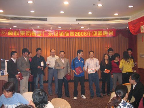商科廣州分公司為了答謝經銷商在過去的一年中給予的支持和厚愛,于1月19日在同甘同味酒店舉辦了"商科集團攜手廣東經銷商2008年迎春晚會"。參與本次迎春晚會的嘉賓有商科集團董事長孫武源先生、商科集團副總經理劉險峰先生、商科集團廣州分公司經理 李小剛先生、商科集團市場部經理 陳濤女士、商科集團臺電外設事業部產品經理 呂家起先生以及70多位遠道而來的廣東省經銷商代表們。
