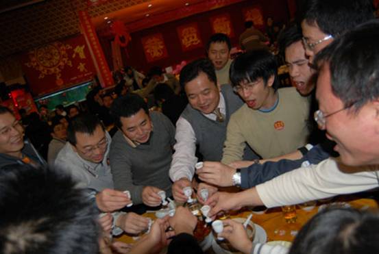 不知不覺兩個多小時已經(jīng)過去了,在同事們快樂的笑聲中,游戲節(jié)目圓滿結(jié)束了。大家大概也都饑腸轆轆了,公司為全體員工準備了豐盛的晚宴享用,大餐開始了。