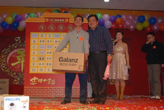 本次晚會商科集團準備了豐盛的禮品和獎項,包括微波爐、IKEA家具、高檔廚具、名牌手表、高檔化妝品、現金等,而且各部門經理也要為大家奉獻愛心現金獎,中獎率高度95%哦!