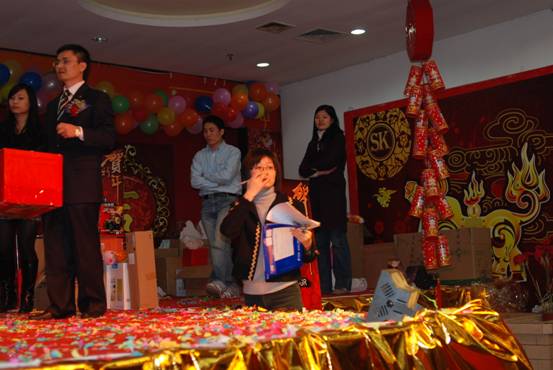 在歡聲笑語中,在聲聲祝福聲中,同事們喜氣洋洋的領著自己的獎品及幸福的心情,離開會場。在這一個喜慶的晚會中,我們為過去一年中取得的成績感到驕傲,我們分享收獲的喜悅。我們為新的一年祝福,我們憧憬充滿希望的2009。讓我們共同祝福商科集團在新的一年里百尺竿頭更進一步,為公司、為員工、為經銷商、為顧客、為社會做出更大的貢獻,讓我們共同努力,把世界變得更美好。