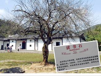 1927.10.24毛主席來(lái)到井岡山第一個(gè)住所—白屋,房前一棵大樹下的“讀書石”。