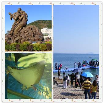 第三天也是我們行程的最后一天了,這一天行程也很緊湊首先來到了俄羅斯風情街,在哪里才真正知道了歐洲的建筑風格。最后一個景點也是此行我最期待的棒棰島,棒棰島位于大連市濱海路東段,大連市東南約5公里處。是一處以山、海、島、灘為主要景觀的風景勝地。國內幾大國賓館之一、著名的棒棰島賓館就坐落在這里。這里三面環山,一面瀕海;北面為群山環繞,南面是開闊的海域和平坦的鵝卵石沙灘。棒槌島名字的來歷是因離岸500米遠處的海面上有一小島突兀而立,遠遠望去,極象農家搗衣服用的一根棒槌,故稱棒槌島。在哪里體會了大連海水的美麗。大連極地海洋世界那里是孩子們的天堂,國慶人山人海我和同事還是帶著兒子看了動物表演!其樂無窮撒!