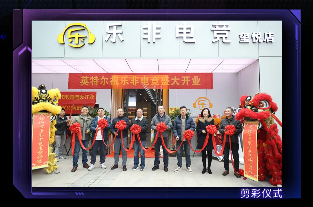 為慶祝“樂非電競”開業,英特爾中國區渠道與合作伙伴業務部總經理宗曄、英特爾中國區渠道銷售部總監常國際、英特爾南區渠道銷售總監張紅、銘瑄科技主板BU總經理王榮攜手“樂非電競”負責人楊興忠和鄭華華進行了簡單而隆重的剪彩儀式。