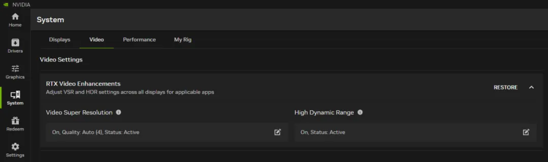 系統頁面是顯示、視頻和 GPU 選項的一站式平臺,包含增強的性能調優功能,以安全地提升幀率。顯示器承載 G-SYNC 顯示選項、分辨率和刷新率控制以及顯示方向設置。未來將更新引入來自 NVIDIA 控制面板的其余顯示設置,例如 Surround 選項、自定義分辨率和多顯示器設置。