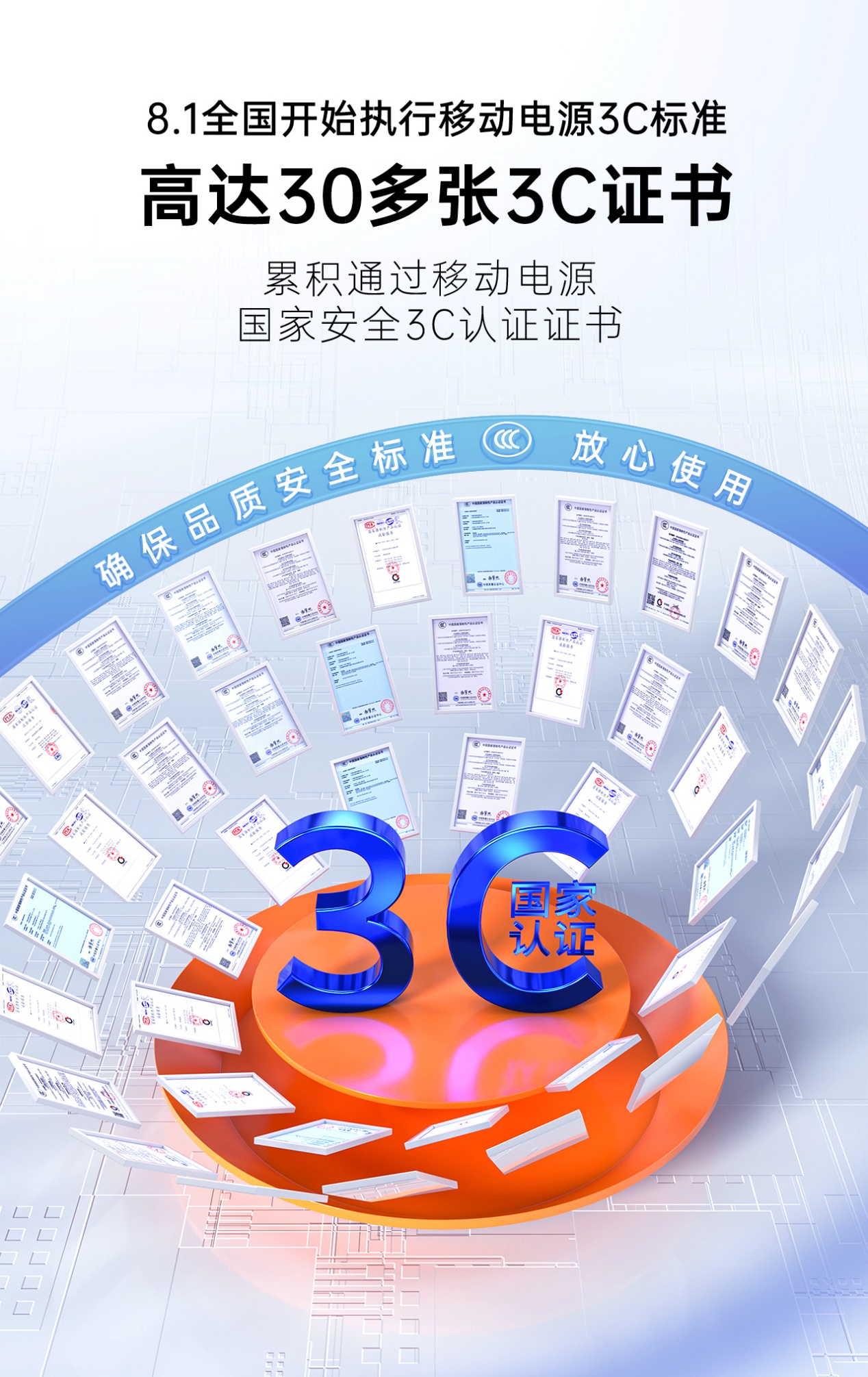 3C認(rèn)證是為保護(hù)消費(fèi)者人身安全和國家安全,加強(qiáng)產(chǎn)品質(zhì)量管理而實(shí)施的一種產(chǎn)品合格評定制度。自2023年8月1日起,移動電源(充電寶)被正式納入3C認(rèn)證目錄,自2024年8月1日起,未獲得3C認(rèn)證的移動電源產(chǎn)品將不得在中國市場銷售。